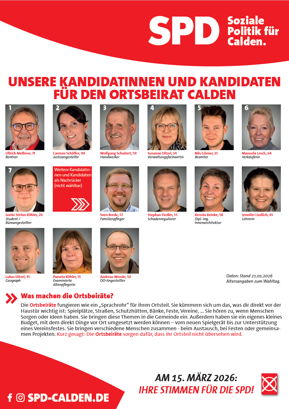 ERFOLGREICHE POLITIK FÜR UNSEREN ORTSTEIL - DIE SPD HAT CALDEN IM FOKUS.